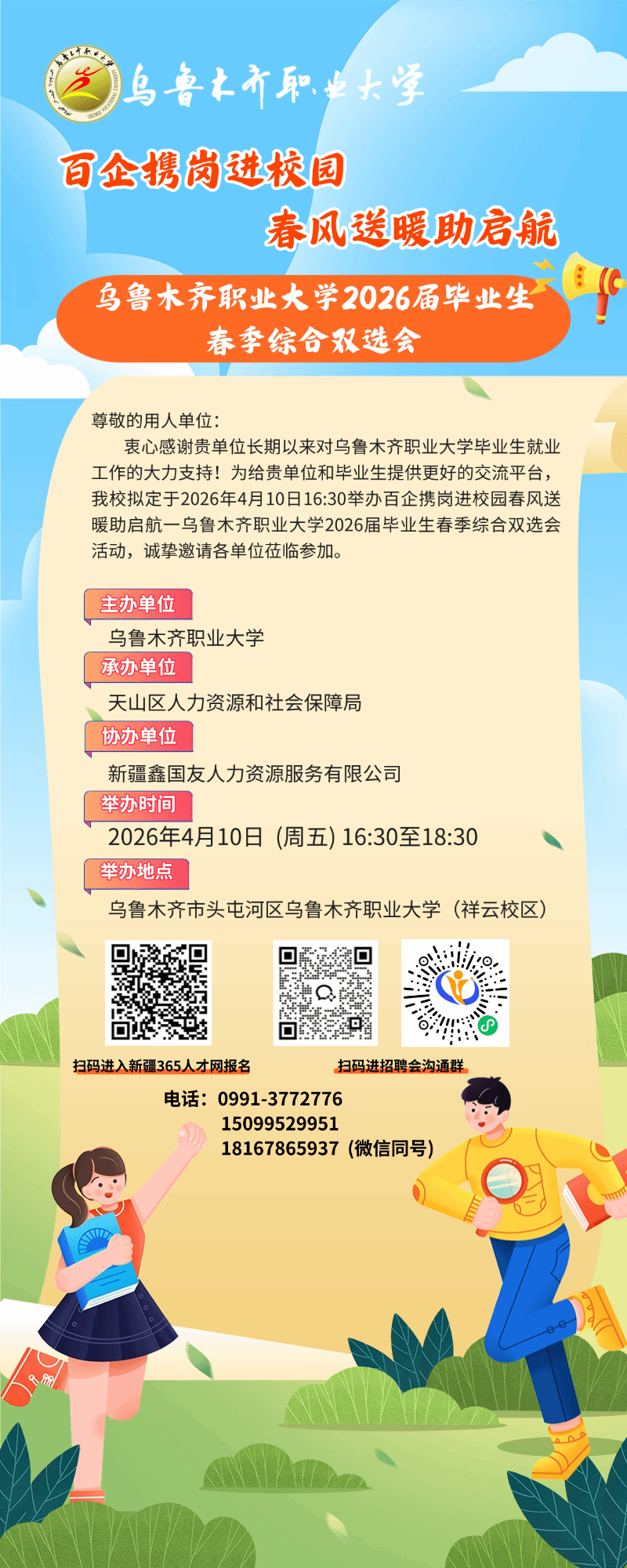 上一条:百企汇文旅 春风绘丝路——乌鲁木齐职业大学2026届春季文旅专场招聘会
